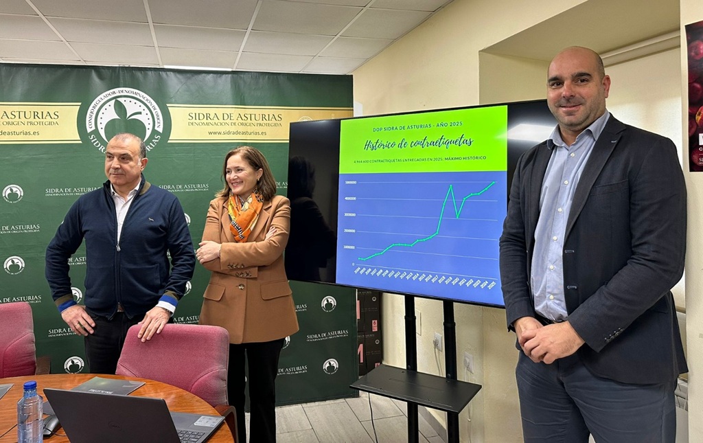 La sede del Consejo Regulador de la Denominación de Origen Protegida Sidra de Asturias ha acogido la presentación del balance correspondiente al ejercicio 2025. Un año que se cierra con cifras históricas y que confirma la consolidación de la sidra asturiana como producto de calidad, estratégico para el sector primario y la industria agroalimentaria del Principado de Asturias.